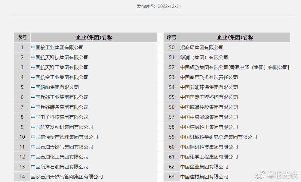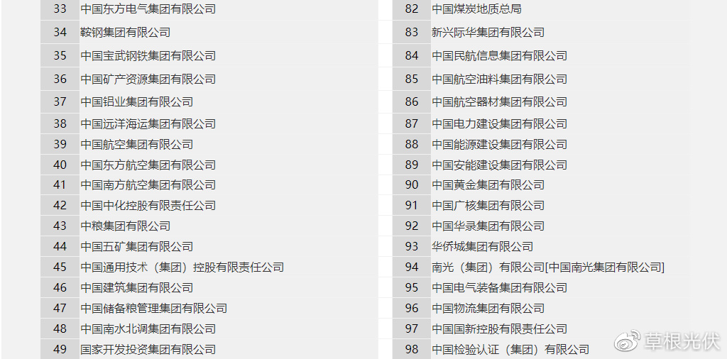 国务院国资委官网显示,截至2022年12月31日,包括“两网、五大发电、四桶油、两核、两建”在内,我国共有98家央企。据“草根光伏”查询,构建新型电力系统风潮下,大部分央企都在加快布局光伏。