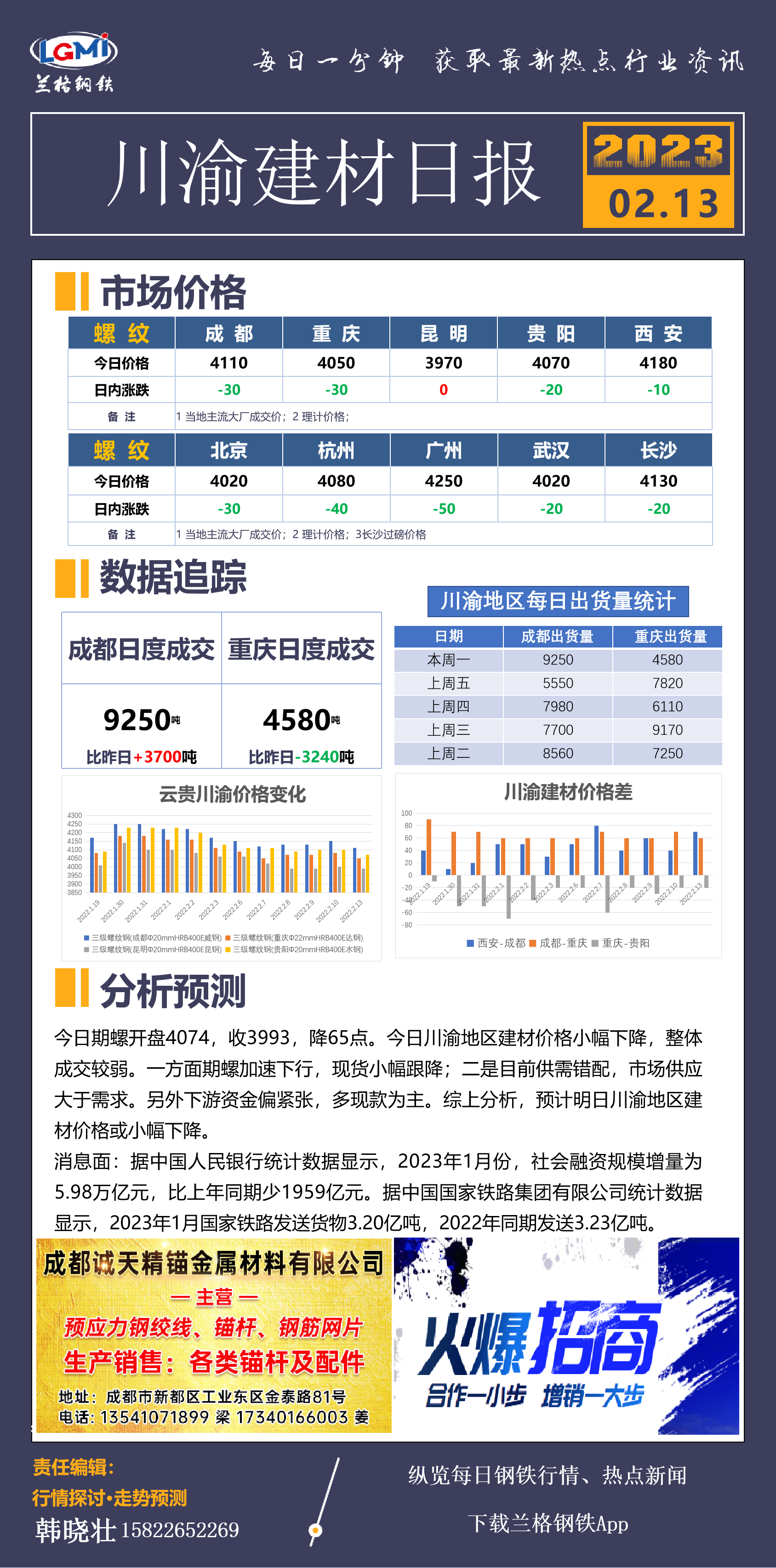 川渝地区建材价格小幅下降 成交分化
