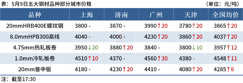 ◎ 5月9日,唐山迁安普方坯资源出厂含税上调10,报3490元/吨。