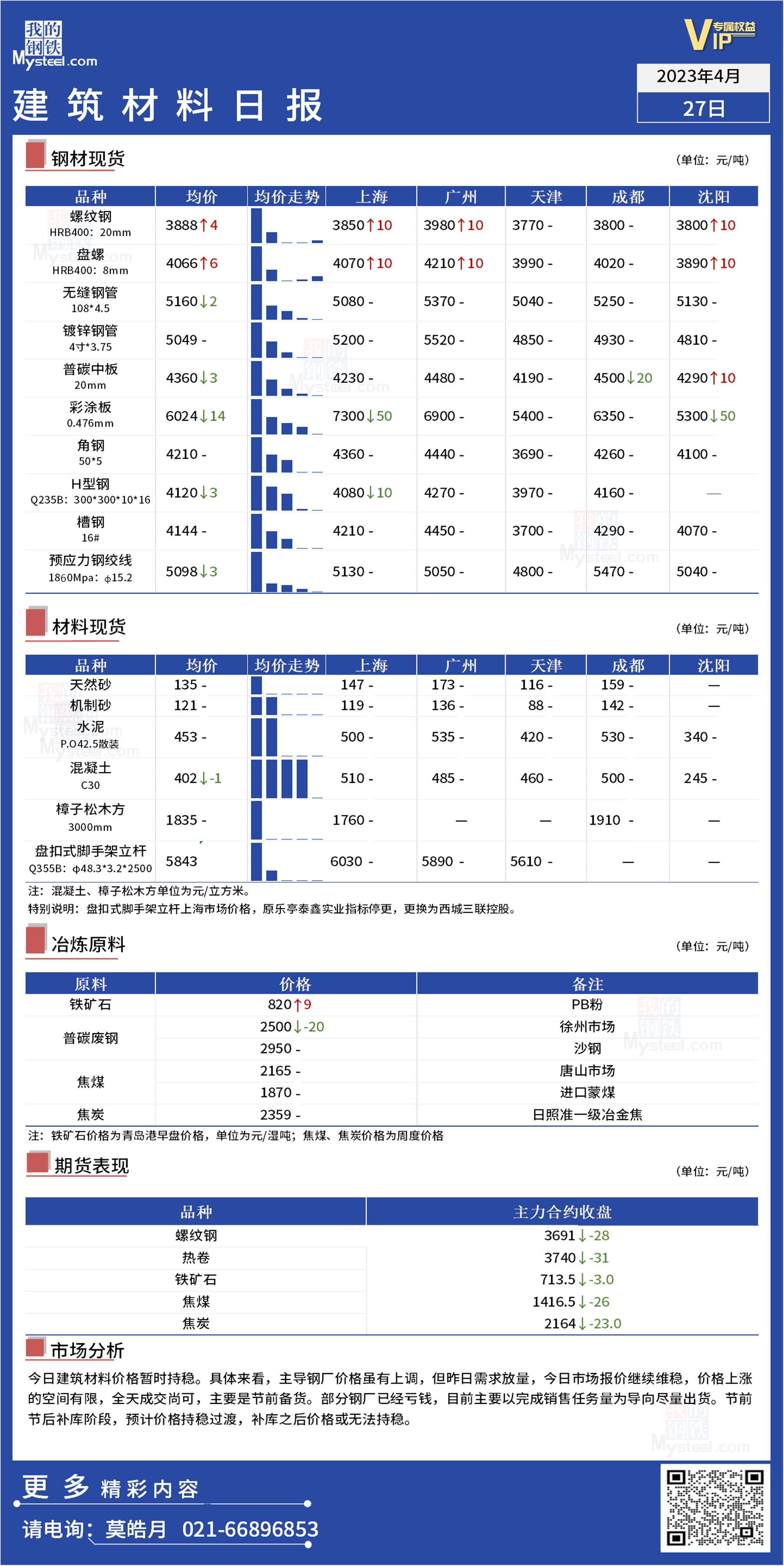 > Mysteel日报:全国建筑材料价格暂时持稳