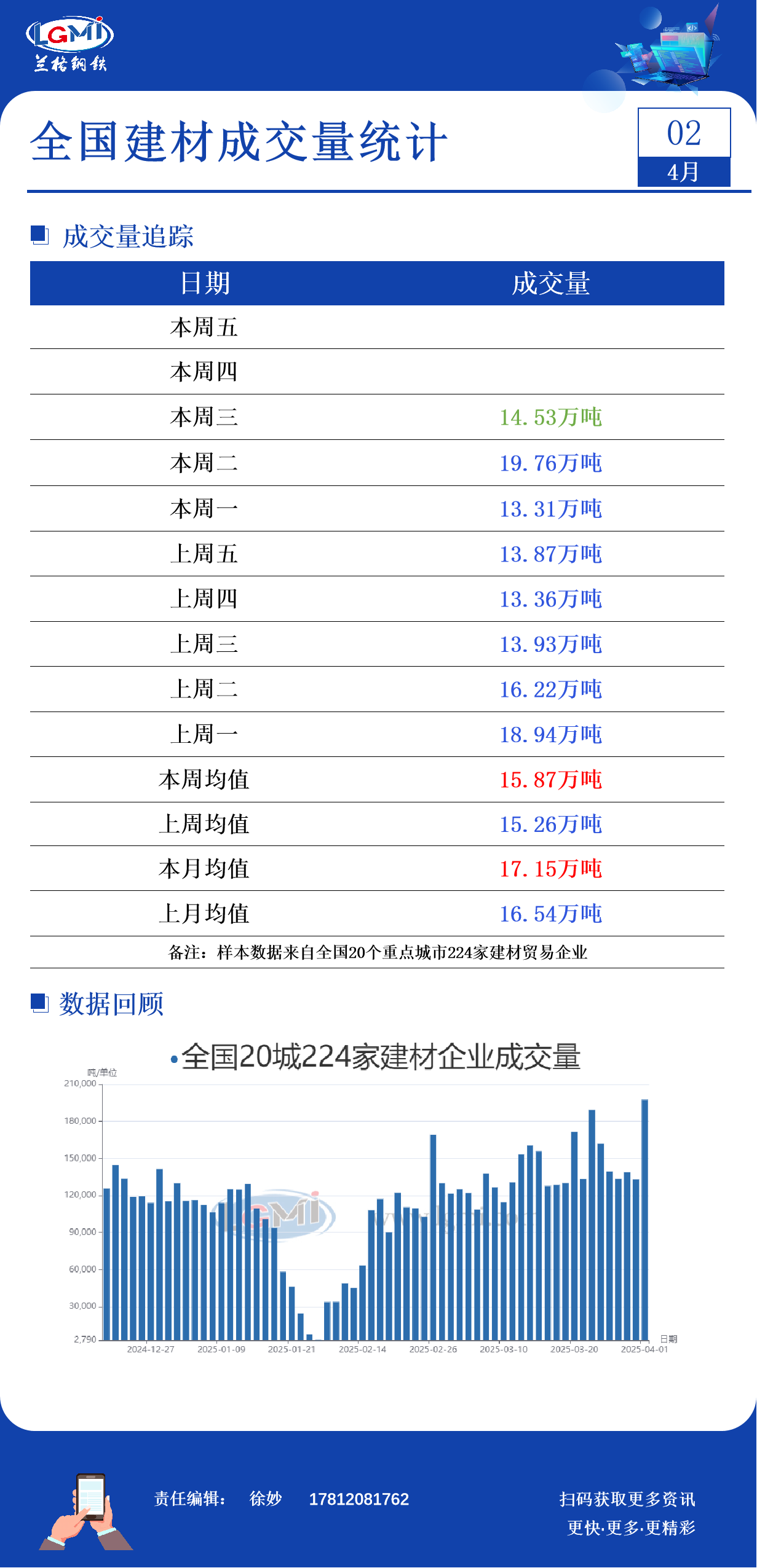 4月2日全国建材成交量大幅减少